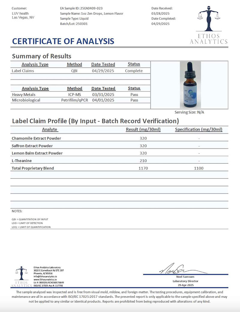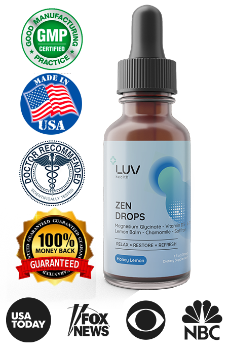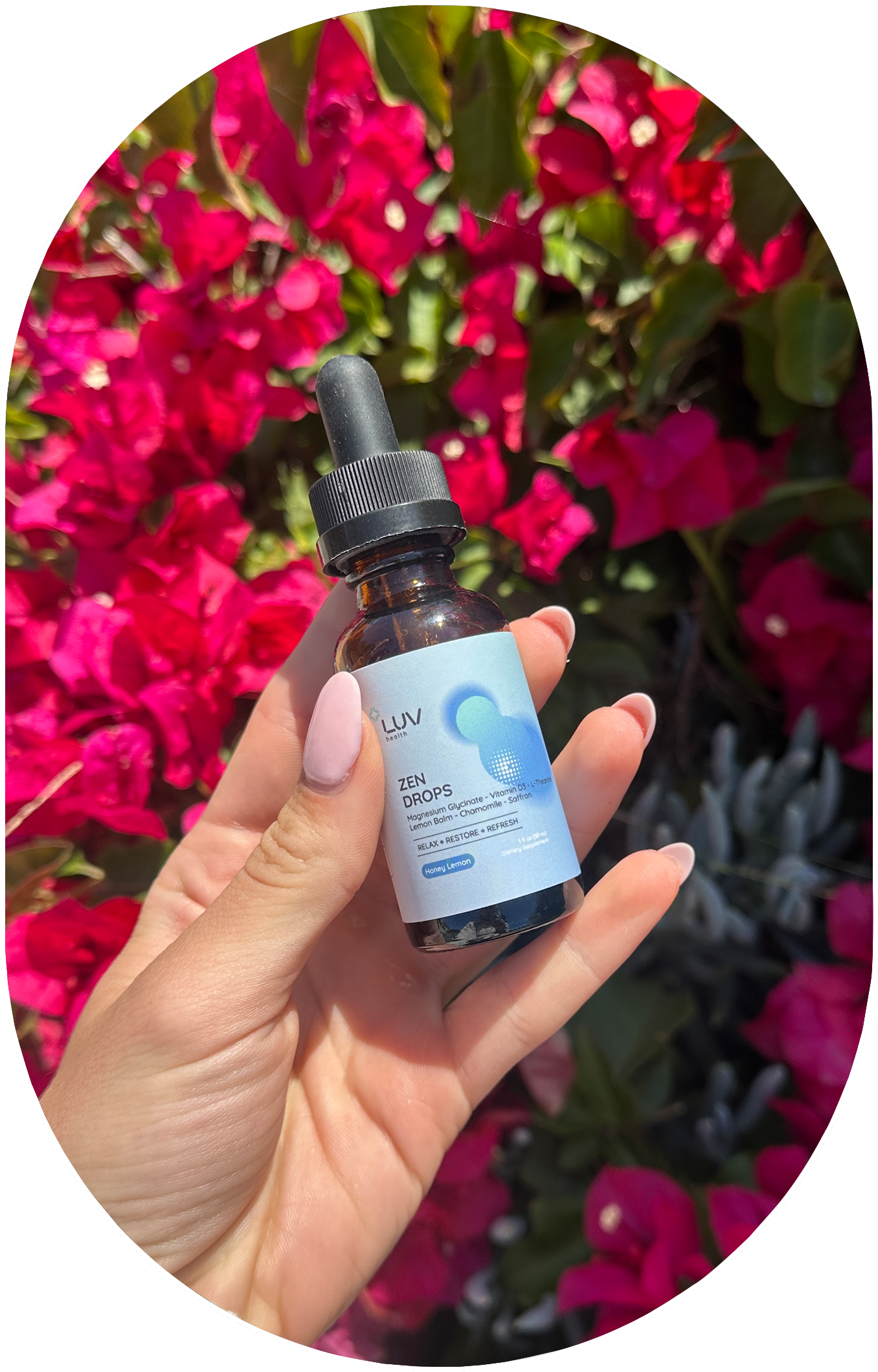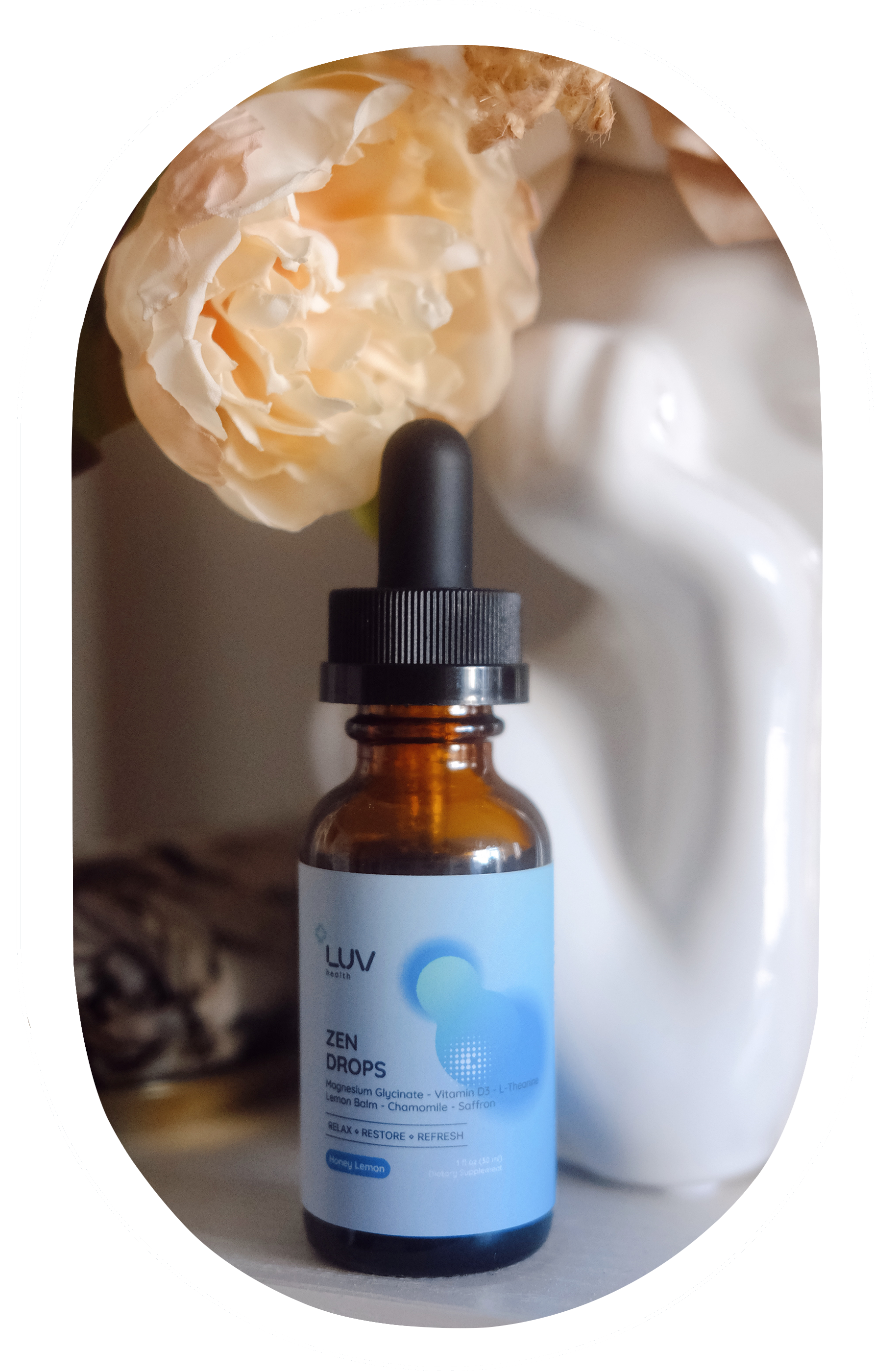LUV health's Zen Drops are here with an all natural formula to support mental and emotional health, mood regulation, and reduce oxidative stress on the brain, all in one delicious daily drop!